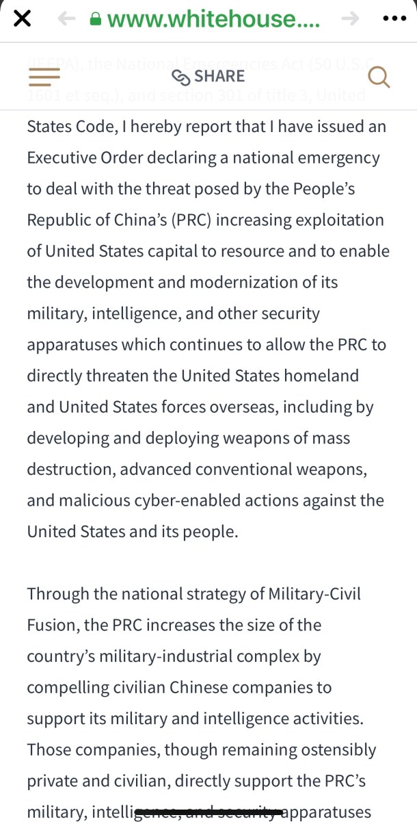 大家不知道,其實緊急狀態令予總統超大權力,絕不是單純針對中資股份。