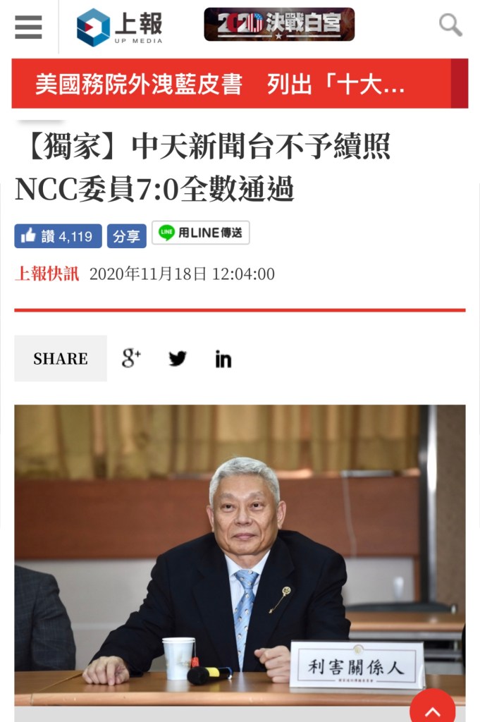 媒體靠邊選站企錯位的話,後果可以十分嚴重,台灣總統選舉前「瞓身」支持被指親中的國民黨候選人韓國瑜,屢屢發表肉麻不實陳述的《中天新聞》,盛傳不獲續牌。