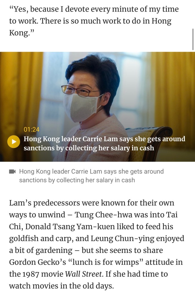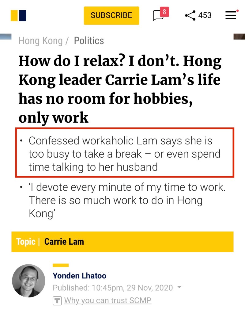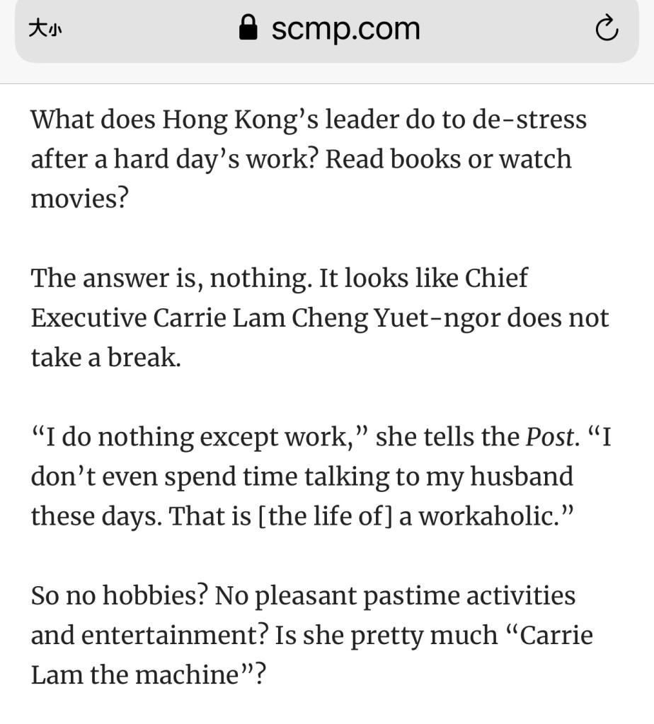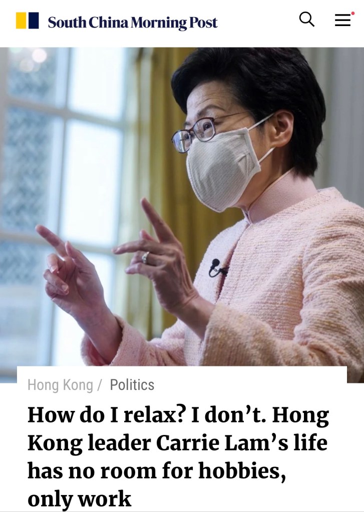 足本:https://www.scmp.com/news/hong-kong/politics/article/3111853/how-do-i-relax-i-dont-hong-kong-leader-carrie-lams-life-has