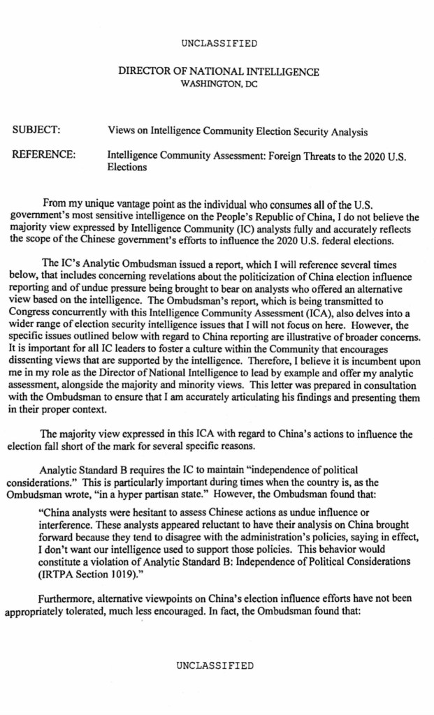 一份關於國家情報局「指控」中國有份干預美國大選的報告流出,內容直指中國及俄羅斯均嘗試干預美國選舉。